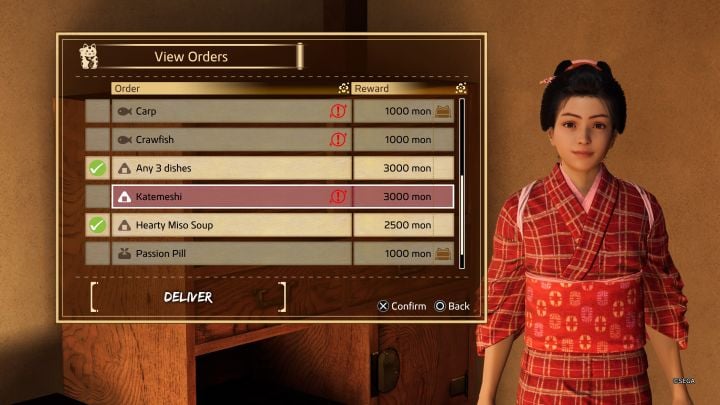 - Meal orders require you to obtain their ingredients AND cook them (successfully complete the mini-game).