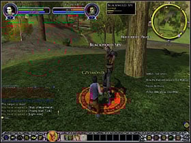 Finish both quests by talking to Dirk and Celandine. You get two healing potions from Celandine. Dirk gives you new greaves and a next mission - The Spies. You are to find a Blackwold Spy, kill him and search his body. Before you set out, find Peg Pruner - the local merchant - and sell some stuff that you've collected so far. Don't waste money on healing potions, you won't need them for the time being, so invest in better equipment (or, even better, don't spend anything at all). Peg has another quest for you (Fresh Supplies) - accept it.