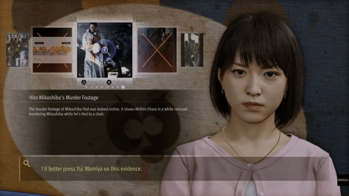 After leaving the office, head to the nearest cab and go to the Tokyo Detention Center. Show the man the murder footage, then select the Did Sawa-sensei tell you what happened? option.