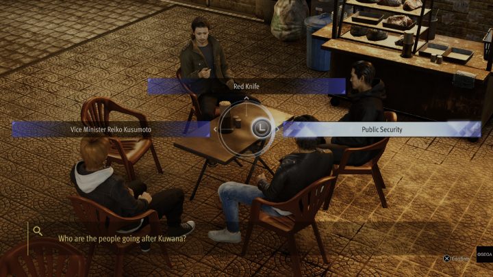 During the conversation, select the Public Security reply, then the They're working with Reiko Kusumoto option.