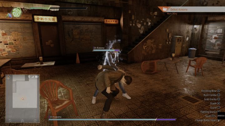 Head to the spot marked on the map, an abandoned building. After the custscene, you will be attacked by RK members. Use the Crane or Tiger style to quickly defeat all of the enemies.