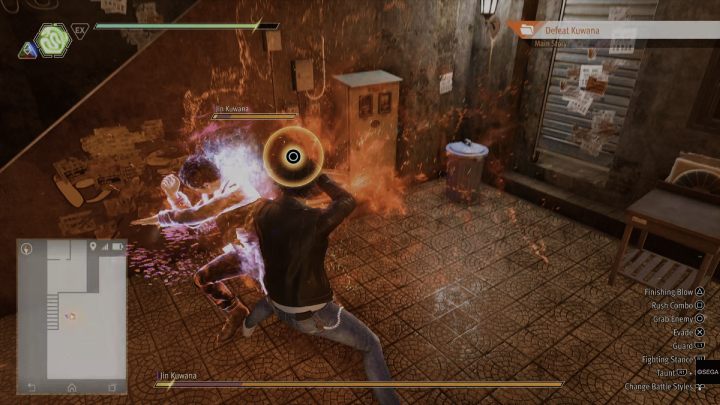 When a red aura appears around Kuwana, it means that he is preparing to launch a powerful attack. Perform the Mortal Reversal action to deflect the attack and deal a lot of damage to your opponent.