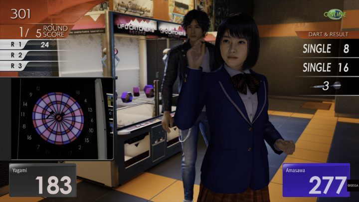 One more cut-scene later, you will end up playing darts with Amasawa. The case will progress regardless of how well you do.