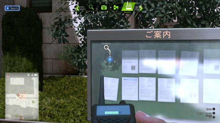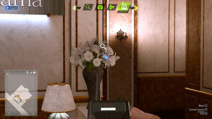 After examining the picture, take out the detector. In the flowers, you will find a EX-4 item.