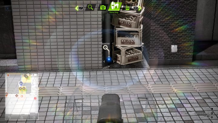 Next, use the Noise Amp to investigate the cabinet in the alley behind the restaurant, where you will find the Free Pass Voucher 2.