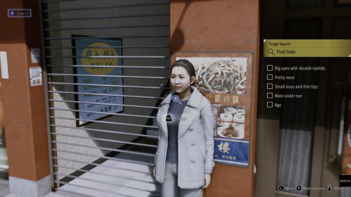 Leave the school and go to the quest marker in Chinatown. Activate the Investigation mode and examine the face of the woman in the white coat.