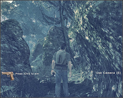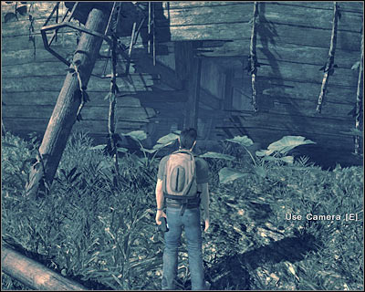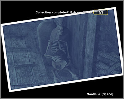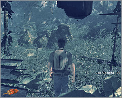 Your main objective will be to find the dynamite, so you have to go to your left. Before you decide to pick up the dynamite, choose a digital camera from your inventory. You will have to take a photo of a skeleton (screen). This will allow you to fulfill one of the sidequests. Once this is done, turn left and pick up the dynamite.