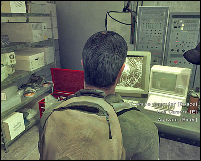 You may proceed towards the second room. Ignore the storage area, because there are only a few beer cans out there. Instead, it would be a good idea to activate one of the computers (screen). This is optional, so if you want to proceed with the main quest, you can leave this room right away. Wait for the game to load the main menu. You are allowed to enter 24, 32 and 38. If you chose 38, you will also have to type 56. DON'T type 77, unless you want to witness your character being killed. :-) Close this window and leave the room.