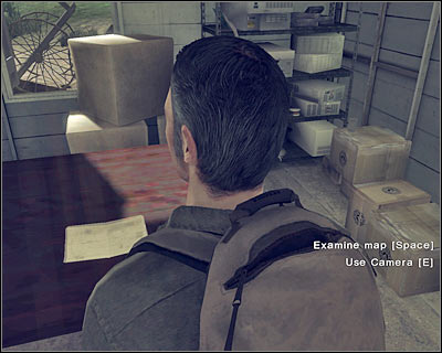 Head on towards the third room. Once again, you may ignore the conversation in the background, because you won't encounter anyone right away. Approach the large table (screen) and use your camera to take a photo of the map. If you've photographed two other maps while exploring the Swan station, you will be allowed to fulfill one of the additional quests. You'll also find a second gunclip in this room.