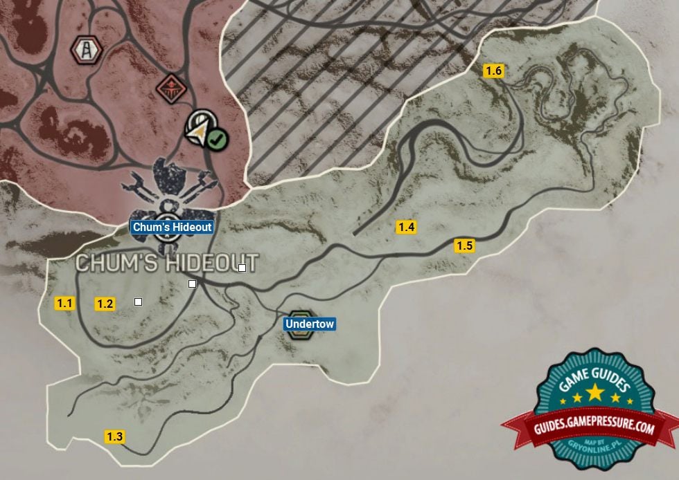 The starting area. Here you will find Chumbucket's hideout in which you will start few first missions. There's also one Camp on this territory which you will take control of during the main mission, and 3 Scarecrows which you will destroy during the same mission.