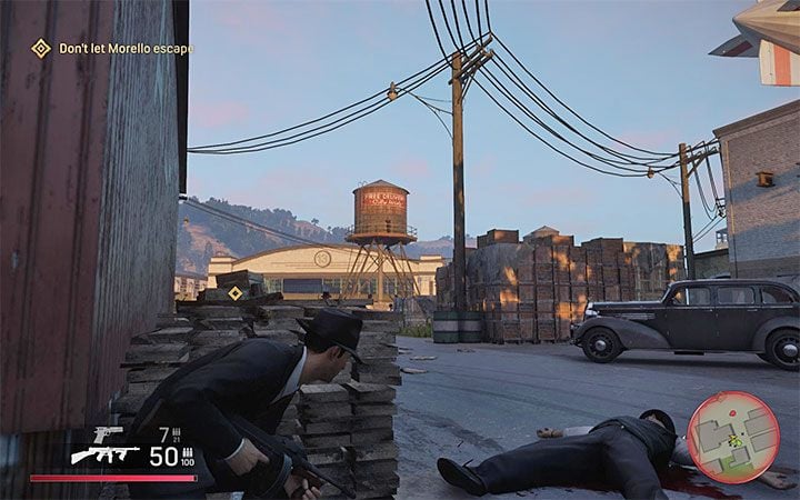Morello escapes to the airport – this is where the next part of the mission will take place. You don't have to rush to get Morello. Instead, focus on eliminating gangsters encountered along the way. Attack them from behind covers. Sam and Paulie will help you kill some enemies.