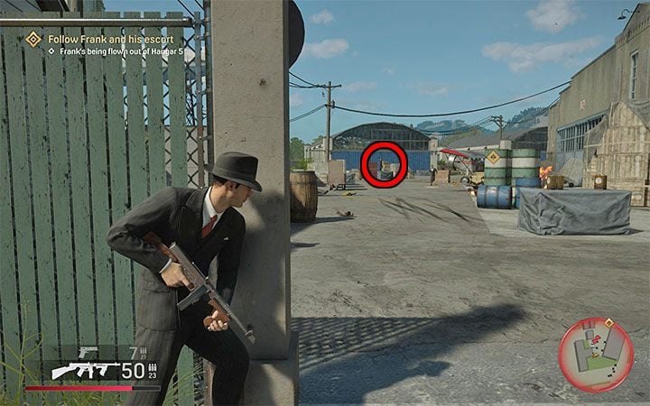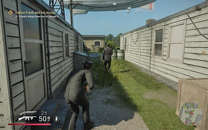 The second option is to sneak into Hangar 5 - it is a better idea in our opinion. This way you can get Frank without taking part in any battles with enemies. In this case, start by sneaking into the airport building shown in the left picture.