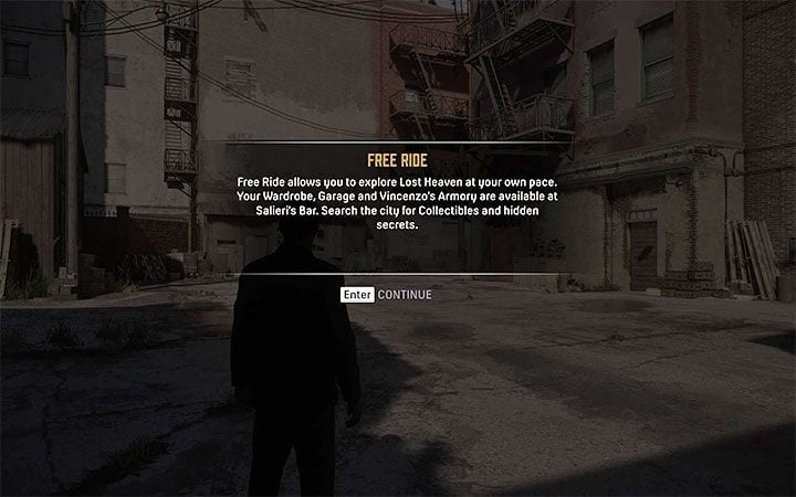 This mode is known from the original Mafia 1. In Free Ride mode, you can freely explore the game's world. In addition to learning about interesting locations, you can, for example, look for secrets, or do optional challenges (Time Trials, firefights, etc.).