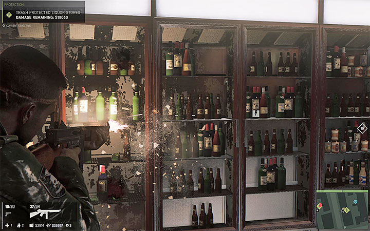 The shop icons will appear on the district map after you interrogate any informant. Before each shop you can find a parked car with gangsters focused on guarding it. You can use a grenade or a machine gun to kill the enemies before they leave the car. Then break into the shop (with a kick) and shoot all the displays. This will probably convince someone to call the police, so quickly leave the area once you're done.