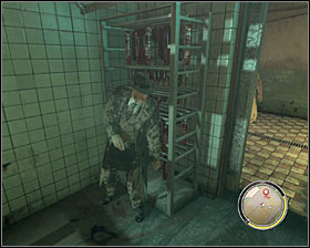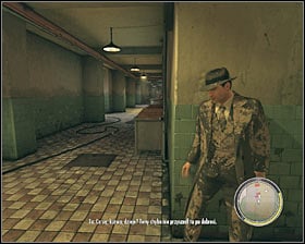 Make sure that Vito is crouching (C key), because you can't be discovered for the next few minutes or the hostages are going to be executed. Ignore the sleeping guard and instead search the area near the dumpsters to find a Playboy magazine #1. Leave this room and carefully approach a new corridor #2. You'll watch a short cut-scene here, showing you where the captured men are being held. Saving them obviously is not going to be a simple task.