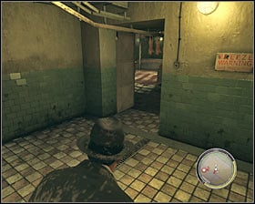 You'll soon reach a corner and you should leave cover for a second or two to collect a Playboy magazine found nearby #1. Make sure to return to cover before the blue meter shown near the radar is full. Continue moving right (press the E key each time when you want to get past a corner) #2.