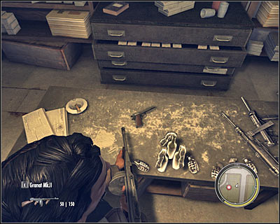 A very important thing when it comes to winning fights is having good weapons. There are a lot of gun stores in Empire Bay and you could visit them to gather supplies. It's not mandatory, however, because all the best weapons can be found by examining bodies of fallen enemies. You also won't have to worry about going on a mission without a gun, because even if you've started the chapter without a weapon you'll probably receive one from Joe or someone else involved in the assignment. Don't forget to always explore the area where you're fighting, because in some cases you may discover armories or small stashes. Using grenades and Molotov cocktails during the game is highly recommended, because they're very effective in dealing with larger groups of enemy units. You should also remember about the possibility of blowing up cars by shooting at their fuel tanks. Most of the tanks can be found on the left side and usually a single hit will be enough to cause an explosion.