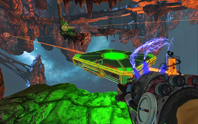 Then change its charge to green and do the same with module on the other side (screen above). When you reach an island, jump on it and go upstairs using a vertical platform.