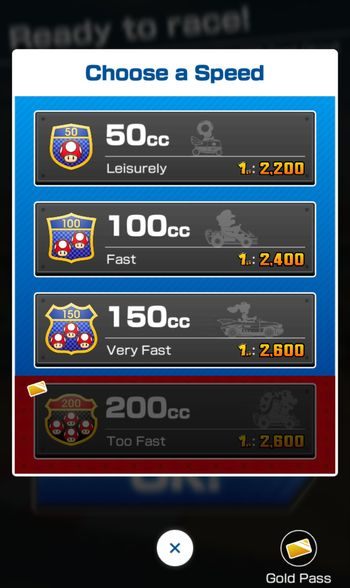There are four types of cards in the game: 50cc, 100cc, 150cc, 200cc. You unlock the first three by reaching the next levels of the character. The last, highest one is available only for Gold Card subscribers. During the game you can freely switch between them. Click on the information bar before you start a race - you will see which card you currently have.