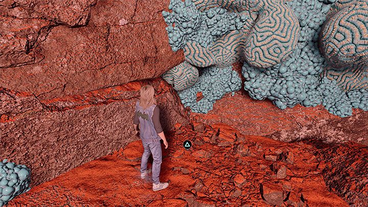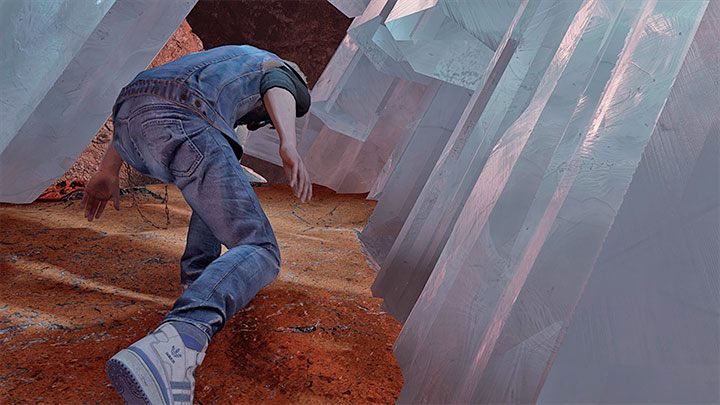 Move around the chasm and crouch to go under the crystals (Figure 1).