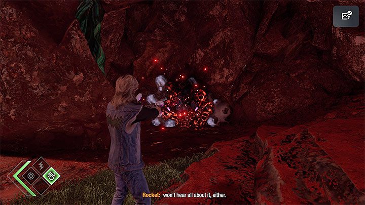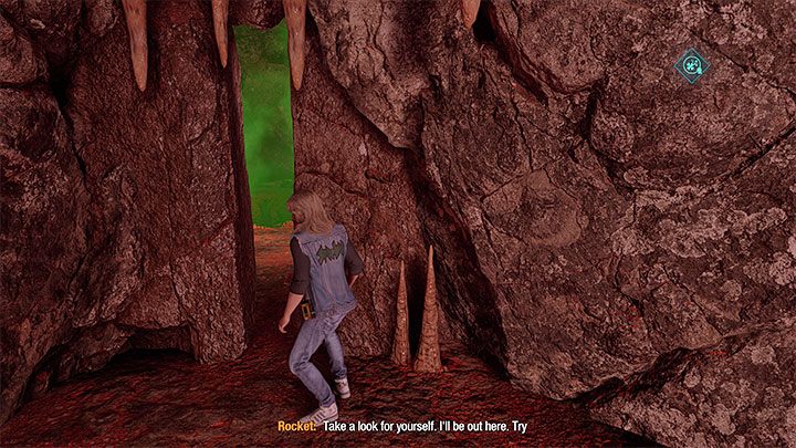 As you go through the cave, try to stick to the right side of it - fortunately Groot will follow you and illuminate the path for you. You will notice the secret shortly before you will be able to get to it (picture 2).
