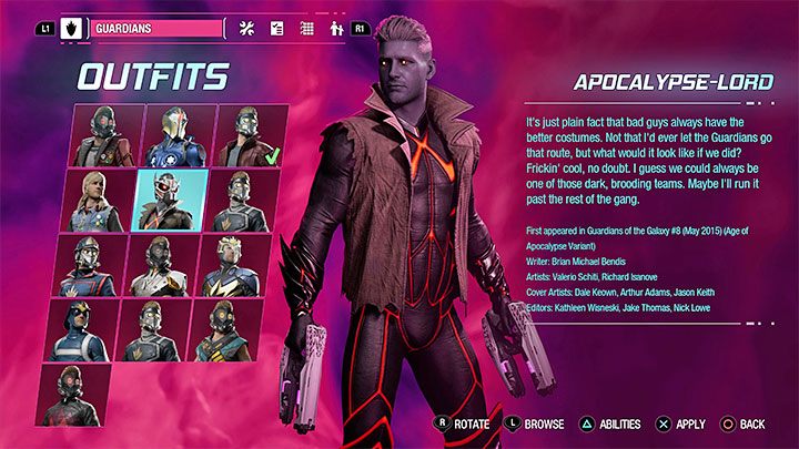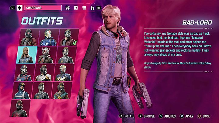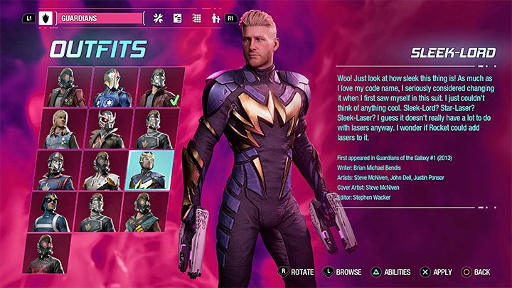 On this page of Marvel's Guardians of the Galaxy game guide, you will find a list of available outfits for Star-Lord (Peter Quill). We show you what Star-Lord's outfits/skins look like and also how you can get them.