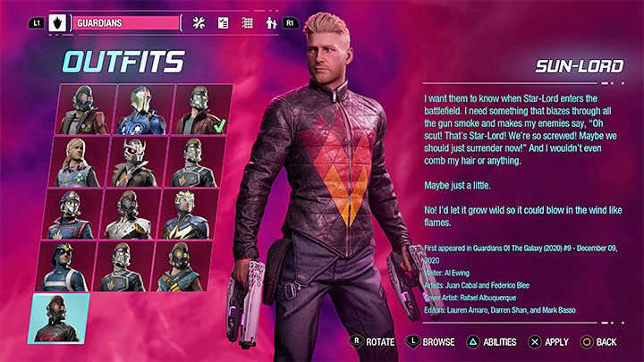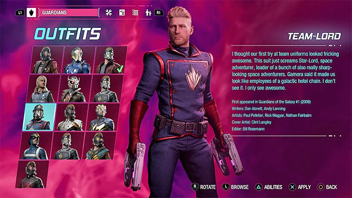 Guardians of the Galaxy: Star-Lord (Peter Quill) - outfits