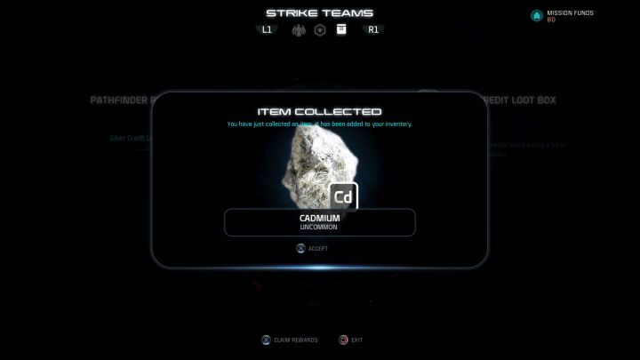 Once the Strike Team succeeds, it will return with multiple rewards. Those, as previously mentioned, depend on the difficulty of the mission and are divided into categories. From worst to best, those are Bronze, Silver and Gold. A Strike Team will, in most cases, come back with two rewards out of a pool of the possible ones - research points, Credits or a box full of crafting components. The better the rank (color) of the loot box, the better / more materials will be found inside. Keep in mind that even though those rewards are rather small and won't have a significant impact on your gameplay, sending Strike Teams is completely free and takes a few seconds to do.