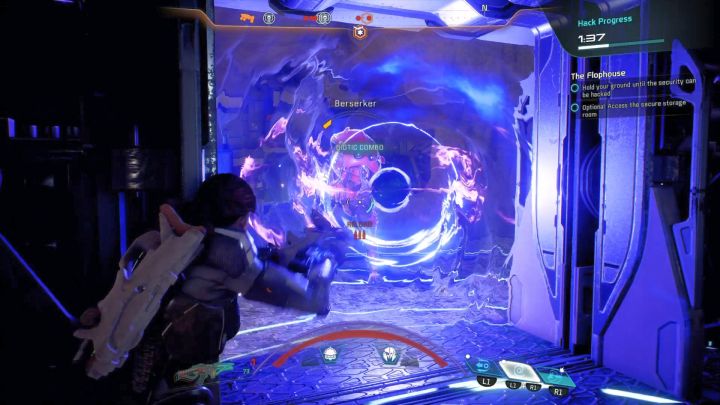 As soon as you manage to hack the terminal inside the building, you will be given an objective to hold your ground until the security can be breached. It is a good idea to stay inside the building with the terminal - this will grant you a cover from part of enemy attacks as well as help you shoot effectively thanks to the high ground. Hold your ground in the building and wait until the hacking process is over. Then kill off all remaining enemies in the area and collect the items they drop.