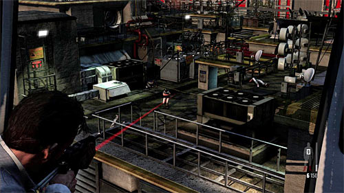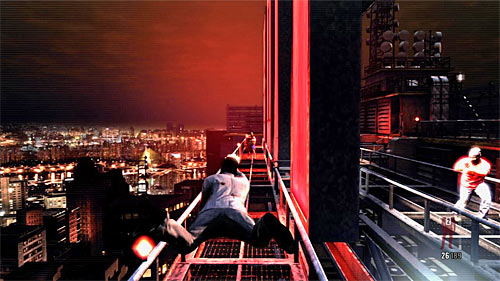 Again, go on the roof on which you've fought against the group of bandits and move to the red neon. After reaching the iron footbridge, you'll start rush in new enemies. Of course, using the slow motion is a good idea, but be careful, because it's easy to fly over the barrier and die. Enemies will appear in front of you and on the right.