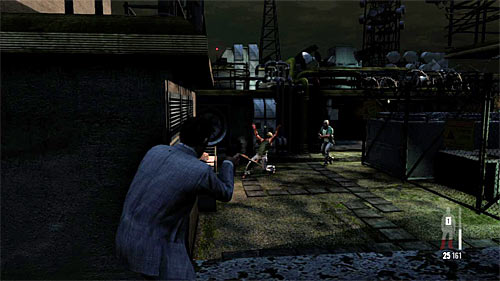 You'll run into next enemies a little further (screen). I recommend fire behind the cover. For this choice stands a fact that you'll eliminate bandits one after the other, not all at once.