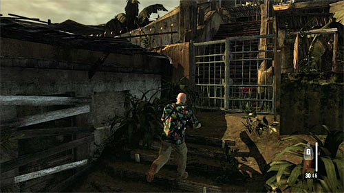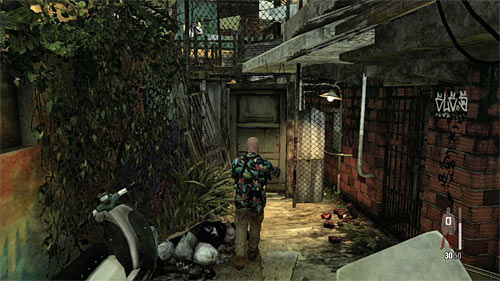 In the further part of the encounter kill also those thugs standing closer, running at Max from the stairs. After initial securing the area check the region on the left from the mentioned stairs where you find the last part of a weapon [Golden Gun - Sawed-Off Shotgun 3/3].