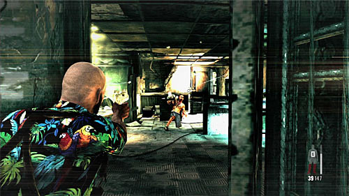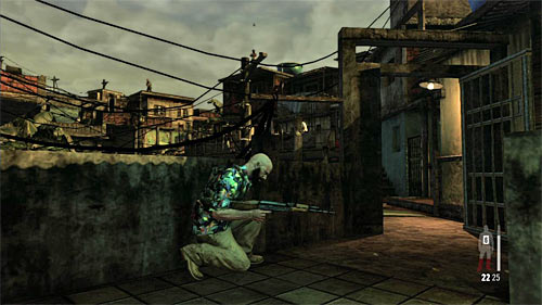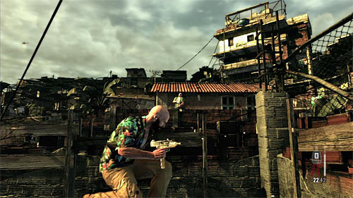 After reaching one of the higher balconies, prepare to another attack of the bandits who will appear on your left (screen). When you did them in, pick up painkillers.