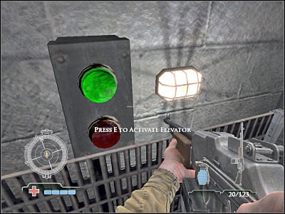 Your only task here will be to press a button, so the elevator will be able to start. Make sure that you're standing inside. Also, don't worry that you have lost control over your character. You will have to wait patiently for the elevator to reach the sewers area. Once this is done, you must also listen to what other allied soldiers have to say to you.
