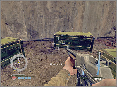 Now you will have to wait for an armored soldier to get here. You can try and start off by throwing a couple of grenades at him. Sadly, it won't do you any good, because he's on a constant move. Instead, try leaning out. Once again, you will have to choose longer bursts, so he won't be able to respond to your attacks. Make sure that you aren't exposed for too long. You will probably have to attack him several times before you'll be able to kill him. I wouldn't recommend using a sniper rifle against him, because it's going to be useless.