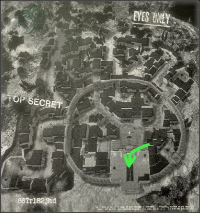 Once the soldiers are gone, try going to the lower level of the tower building. You will have to use the stairs. Be careful, though. This staircase may be guarded by a single enemy unit. You will have to kill this soldier right away, so he doesn't surprise you later during the course of this mission. You will find a new hole. Use it to get rid of a few soldiers. They will be guarding the entrance to the town hall, so try being more thorough this time. Just as before, they will be surprised by your attacks and you won't have to worry about their counterattacks.