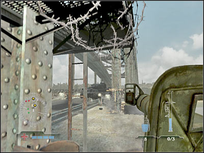 Watch out for the second balcony. It's located to your right (look at the screen). I'm sure that one of the enemy units will be hiding there, so you must kill him quickly. Watch out for the central area. Kill everyone who decides to leave cover. You should also know that a small group of allied soldiers will help you during these fights. This is something new, because they couldn't leave the checkpoint area before.