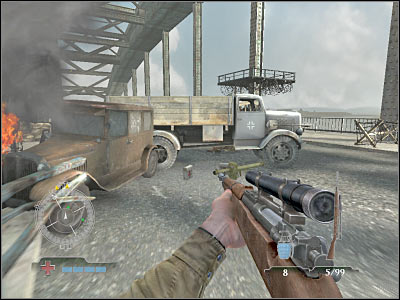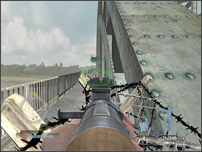 Before you decide to move towards your current target, you will have to make sure that all enemy soldiers have been killed, so you won't have to worry about them attacking you along the way. New German units will appear in the central area of the bridge. Just as before, try killing them from larger distances.