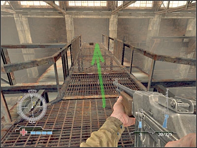 Once you've reached a destroyed section of the platform, turn left (screen). This will allow you to reach the roof area for the control station. There's a large hole where. Get closer to it. You have to be very careful here. You're very close to your target, but you must also remember that it's going to be well defended.
