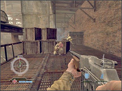 Keep moving forward. There's only one passageway here, so you can't get lost. As you've probably noticed, allied units will join you. Once you're close enough to enemy troops, hide behind a good cover and start shooting at them. Enemy soldiers will appear in front of you, so you won't have to worry about being surprised by someone.