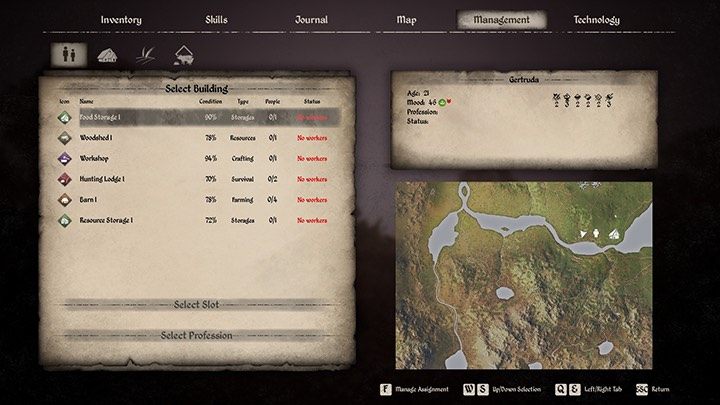 After the NPC decides to join your village, you will need to assign them a home and a workplace in the management menu. The workplace determines the resources provided by a given NPC, e.g. a hunter assigned to a hunting lodge will earn you meat and skins.