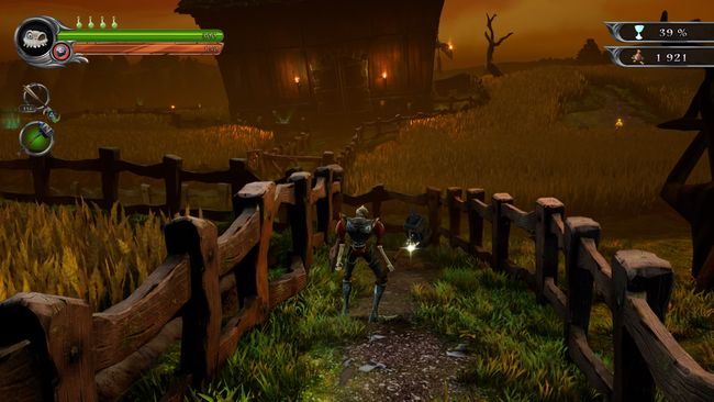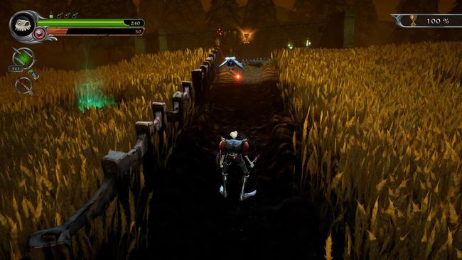 Watch out for the windmill. Pass by it and replenish your health in the fountain. Take down two scarecrows and the villager. Pick up the shield and fight the second machine. The procedure is the same, but this time the machine will be additionally shooting fire bullets from its head. This shouldn't cause you any problem. Eliminate the machine just as you defeated the first one. You will receive a Chaos Rune and the "Impaired Drivers" trophy. use the rune to open the nearby passage and go to the barn. Near the barn, you will find a book to read. Keep moving forward. Avoid entering the fields. If the enemies lurking in the fields catch you, you will die immediately. Watch out for the scarecrows. You should look for a chest with a skull. Smash it in order to release Kul Katura - a friendly snake master. He will be killing your enemies for some time. Scarecrows are probably the most dangerous opponents in the game and Kul Katura is a great help when facing them. Once you deal with the enemies, read the two books and explore this area for gold. Similarly to the previous location, you will find a fireplace here. Set the club on fire and use it to burn the haystacks. Collect additional gold and the health vial.