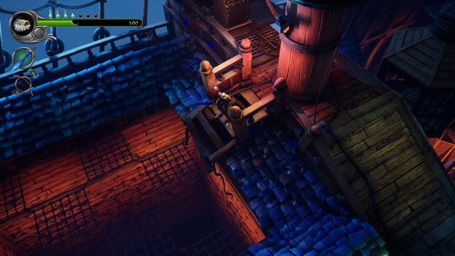 Now you are waiting for a battle with the Ghost Ship Captain. It has been slightly modified in relation to the original. Equip your mace and use the pressure plates to steer the cannon. Now set the mace on fire and use it to fire the cannon - the cannon balls must hit the Captain. Avoid the objects that the Captain is throwing at you, as well as the enemies that he is raising. Once half of the enemy's health bar is gone, it will start raining, putting out the fire. The captain will now throw a lot of items at you, the last of them will be an incendiary bomb. You must position yourself in such a way so that the captain will throw the bomb at the cannon, firing it in the process. The cannon must also be directed at the enemy. This is by far the most difficult level and boss, so you need perseverance and a bit of luck. For your victory, you will receive the "Bone Head Bone Dead" trophy.