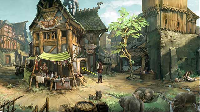 After a conversation with Jacomo (you will get a wine jar), if you want to get the fifth achievement, turn a pork roast (on the left side of the room).