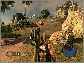 You have to find for your pilot a bomb. On your map mark will appear; it shows a localization of enemies' base with wanted weapon. To get there use a water scooter [#046].