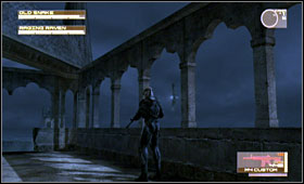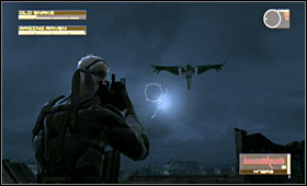 To find Raven use the Solid Eye's radar. The biggest point is pointing the direction, where you have to go. When you spot her hanging motionlessly - shot her as much as you can. But watch out - sometimes she would fire a rocket at you. You can avoid it by rolling to sides. If the Snake is hit and on fire - roll to extinguish the fire.