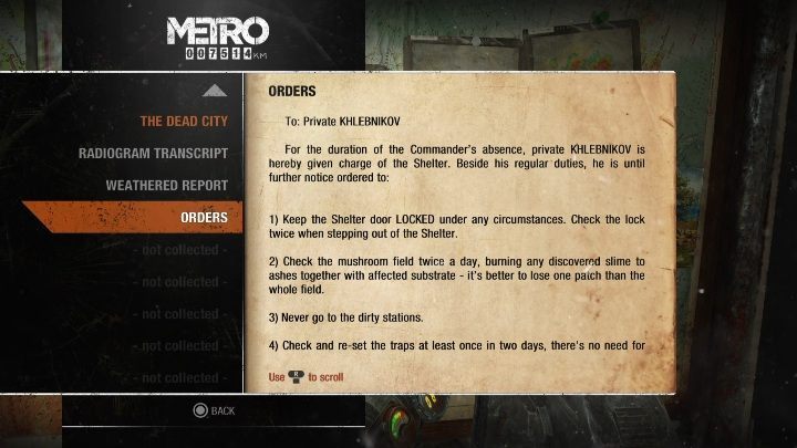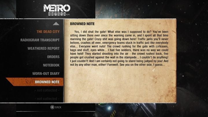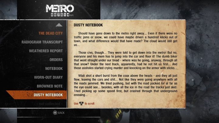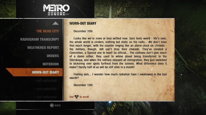 In the last two chapters of the game (Autumn and Dead City) you will find nine diary notes. Each memo is described in detail. Additionally, on the map you can check the exact location of each collectible.