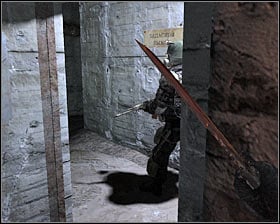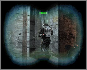 You'll soon reach a junction and you should wait here for one of the enemy soldiers to show up #1. Use a knife to kill him and then choose a corridor located to your right. You should end up standing in a dark room with two other soldiers #2. Get rid of them and be prepared to deal with other enemy units.