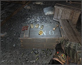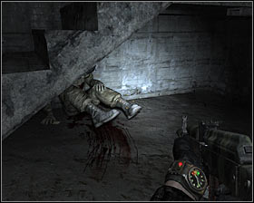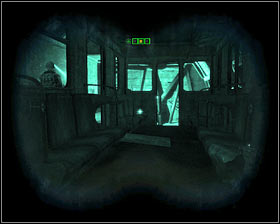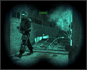 Direct approach: Start this mission by removing your gas mask and then approach a nearby grating. You won't have to pick up a silenced rifle offered by one of your allies #1. Instead collect only ammunition. Check the surrounding area to find several bodies and nightvision goggles #2.