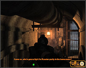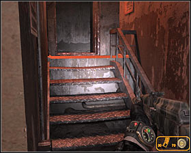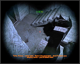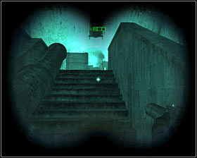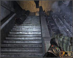 This tunnel will lead you to the main area of the black station #1. Notice that disabling the generator has been a good idea, because it's much darker in here. Approach enemy units, wait for a good moment and quickly use the stairs found to your left #2 to get to an upper level. Walk through an opened gate. You can find out what to do next from the Final part of the mission section.